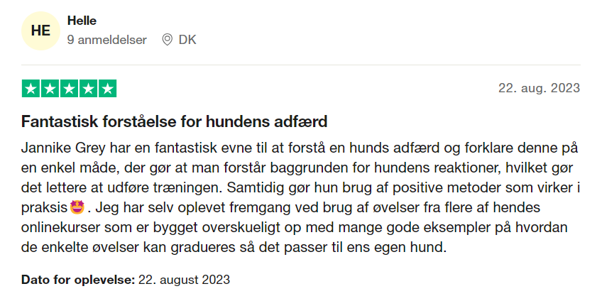 Du er altid velkommen til at skrive på info@jannikegrey.com, hvis du er i tvivl, om onlinekurset er noget for dig og din hund.